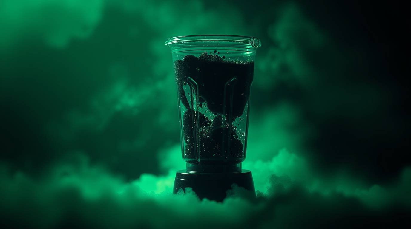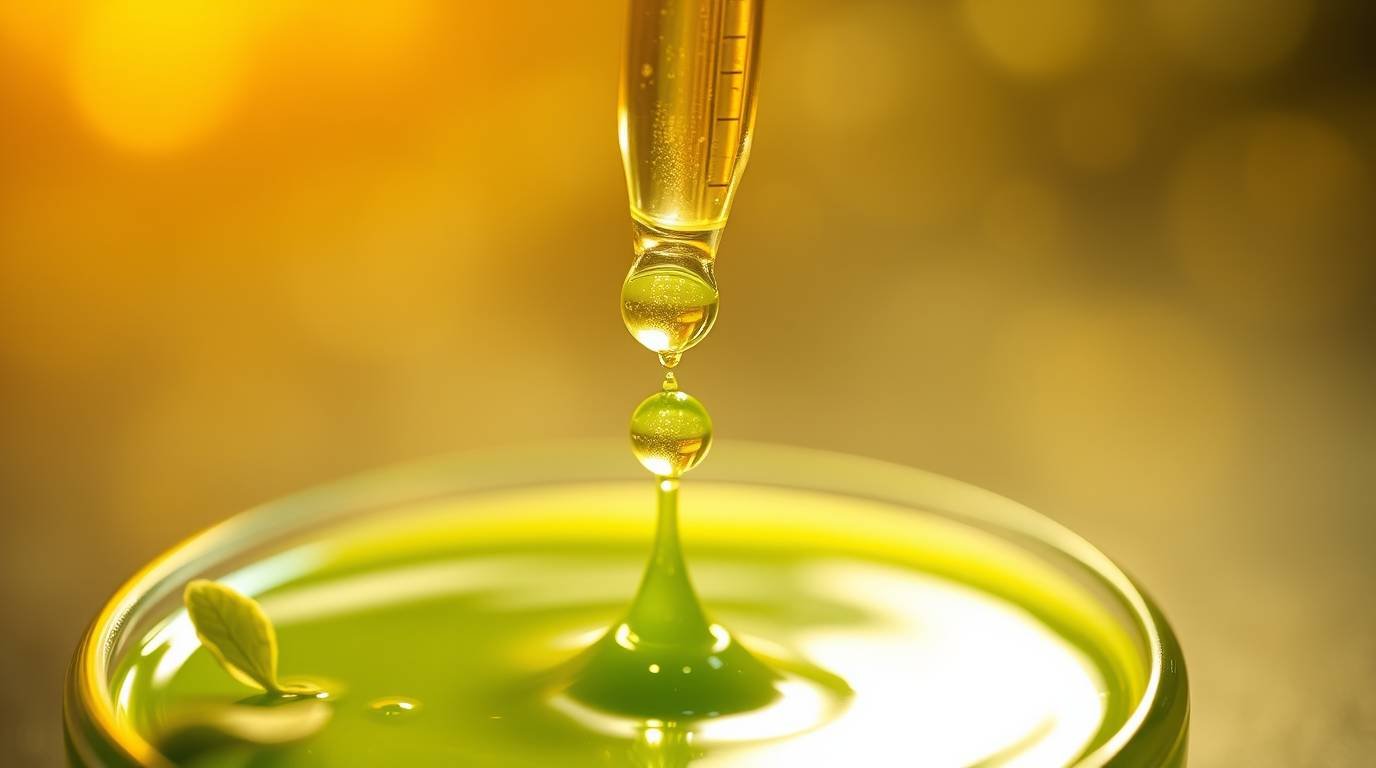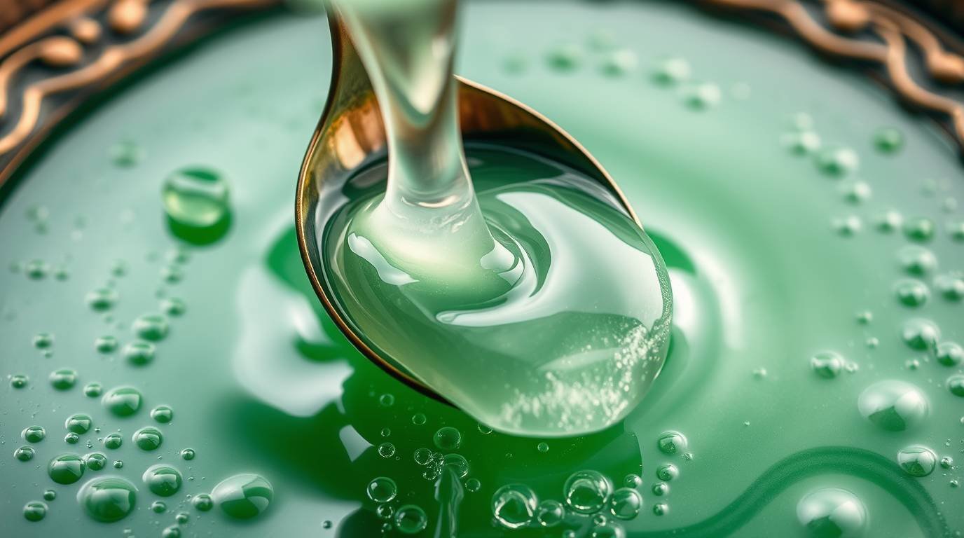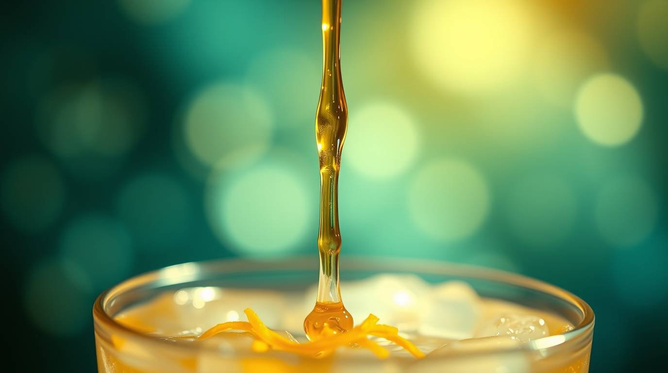 A transformative drink that embodies the essence of cellular renewal and nervous system harmony, glowing with an iridescent green-gold hue.
