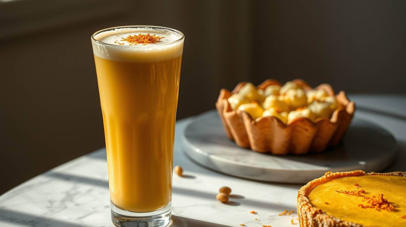 A lightly sparkling yogurt-based drink infused with saffron and cardamom, sweetened just enough with honey. The creamy tang of the lassi balances the tart’s richness, while saffron and cardamom echo the exotic warmth of the mechoui spices. Served chilled in tall, slender glasses with a delicate saffron thread floating on top.