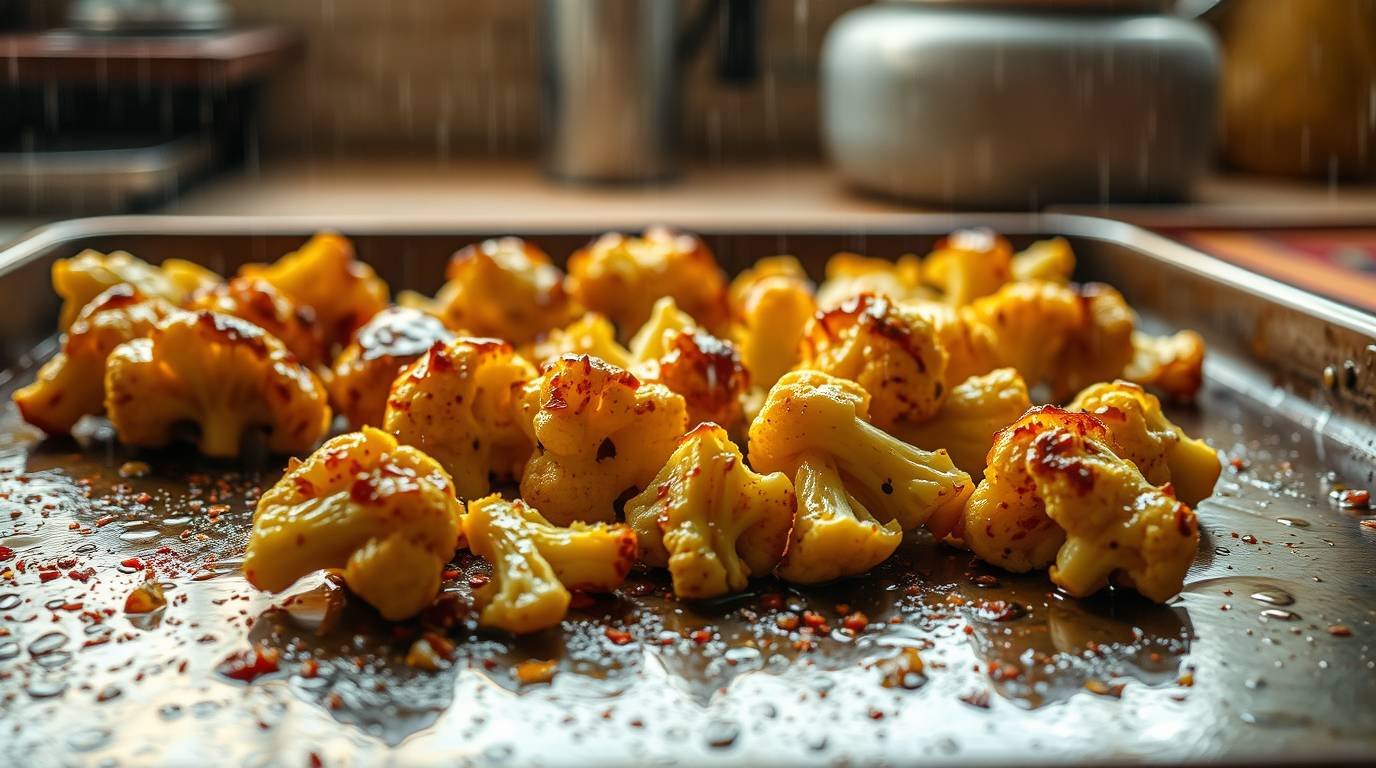 Preheat your oven to 400°F (200°C). Cut the cauliflower into florets and toss them with olive oil, salt, and your choice of spices (like cumin or paprika) until well coated. Spread them out on a baking sheet in a single layer. Roast for about 25-30 minutes, or until golden brown and tender, flipping halfway through for even cooking.