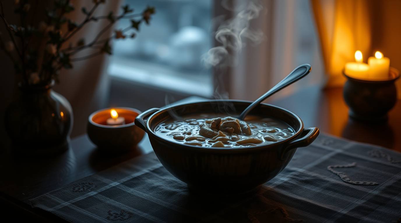 The flavors are intentionally subtle and earthy. Nothing here rushes the body. Garlic and thyme whisper rather than speak, and the creamy base holds everything together without heaviness. Optional Lion’s Mane or Reishi may be added as a final gesture—Lion’s Mane when clarity is still needed, Reishi when the day is ready to close.