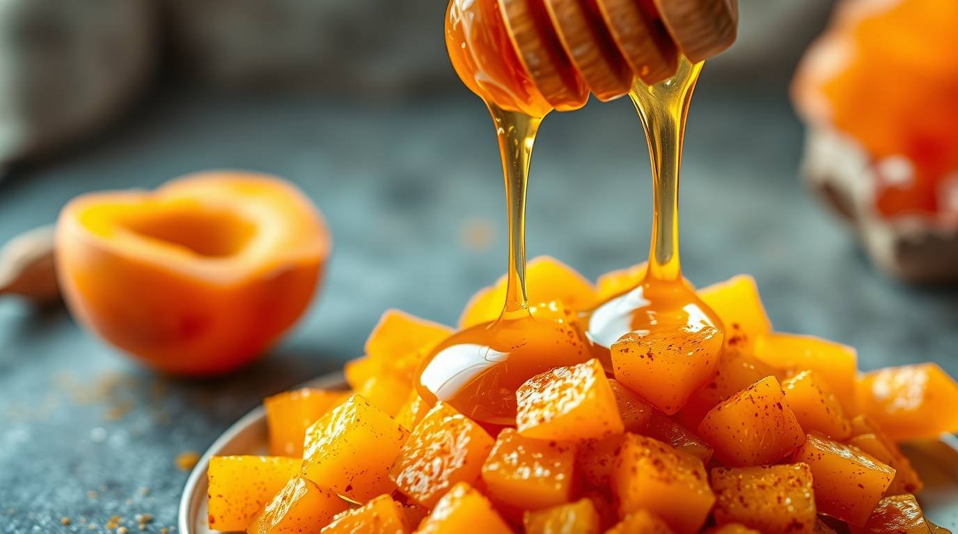Sprinkle a pinch of ground turmeric over the apricots, then drizzle with a teaspoon of honey. Mix until the apricots are coated.