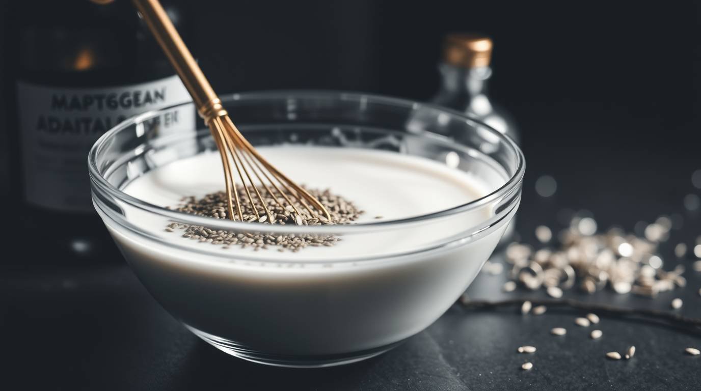 In a medium-sized bowl, whisk together 3 tablespoons of chia seeds with 1 cup of almond milk. Stir in a teaspoon of vanilla extract for a hint of sweetness.