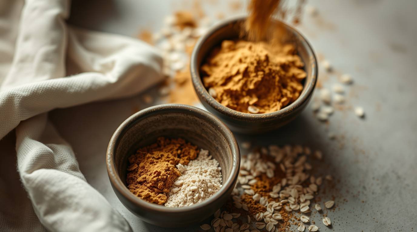 Sprinkle a dash of Ceylon cinnamon and a tiny pinch of turmeric into the oat mixture, stirring well to ensure even distribution.