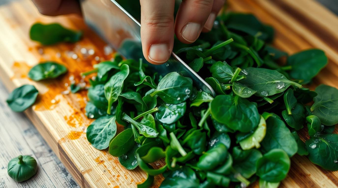 Rinse the spinach thoroughly under cold water to remove any dirt or grit. Shake off excess water and chop the spinach into bite-sized pieces.