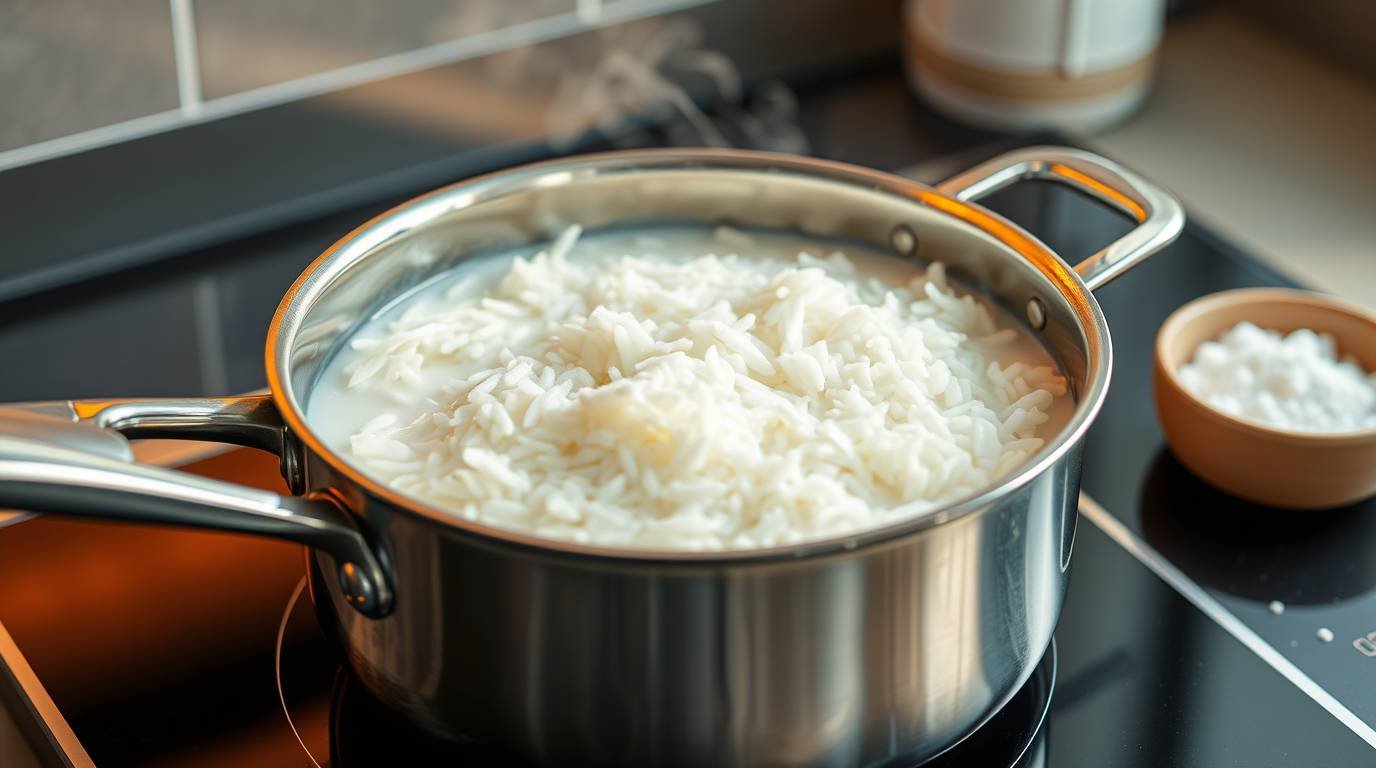 Rinse one cup of jasmine rice under cold water until the water runs clear. In a medium saucepan, combine the rinsed rice with 1 1/2 cups of coconut milk and a pinch of salt. Bring to a gentle boil over medium heat, then reduce the heat to low and cover. Cook until the rice is tender and has absorbed the liquid, about 15 minutes.
