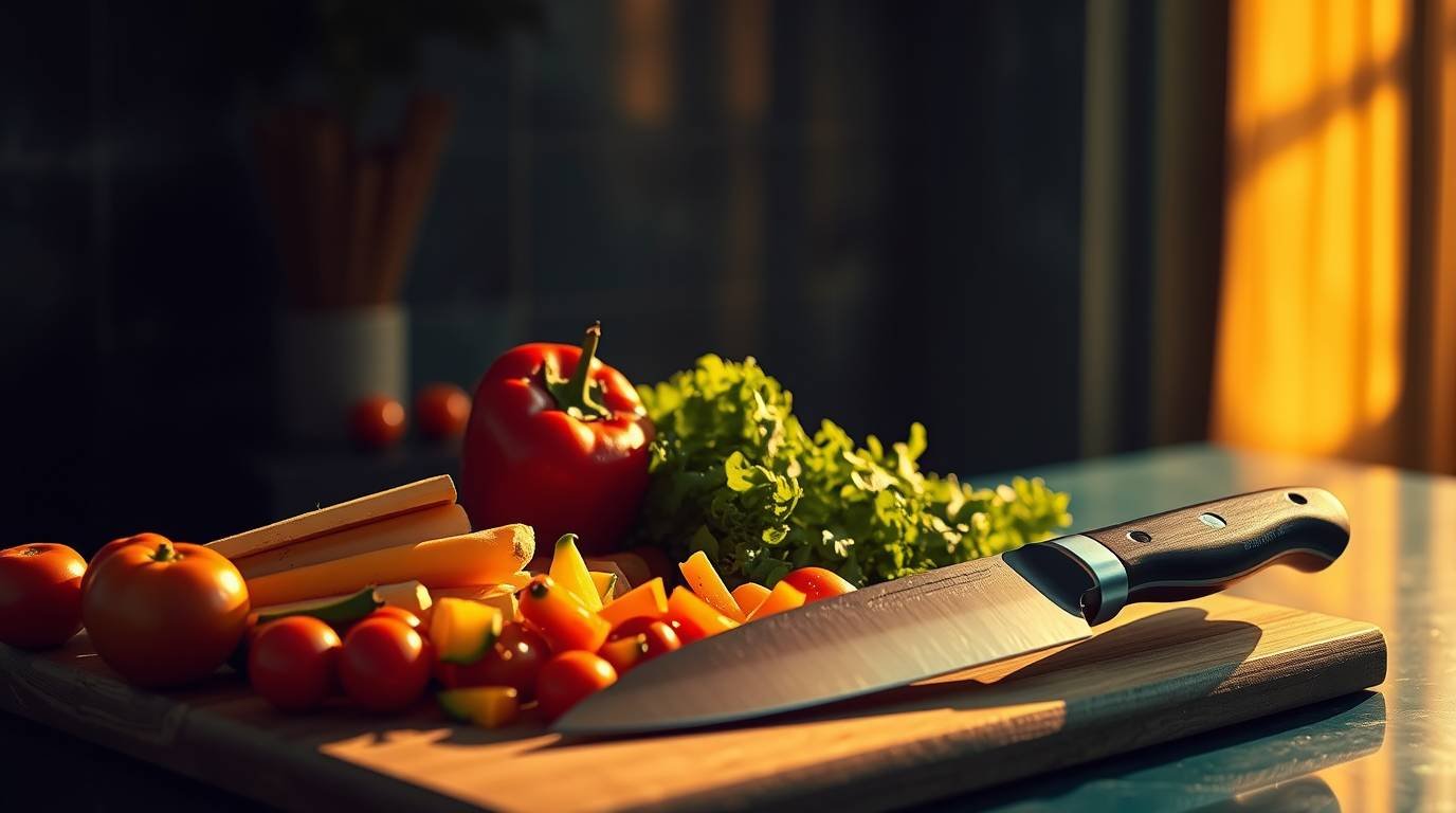 While the quinoa is cooking, chop 1 cup of cucumber, 1 cup of cherry tomatoes, and 1 bell pepper into bite-sized pieces. Also, chop a handful of fresh cilantro and green onions.