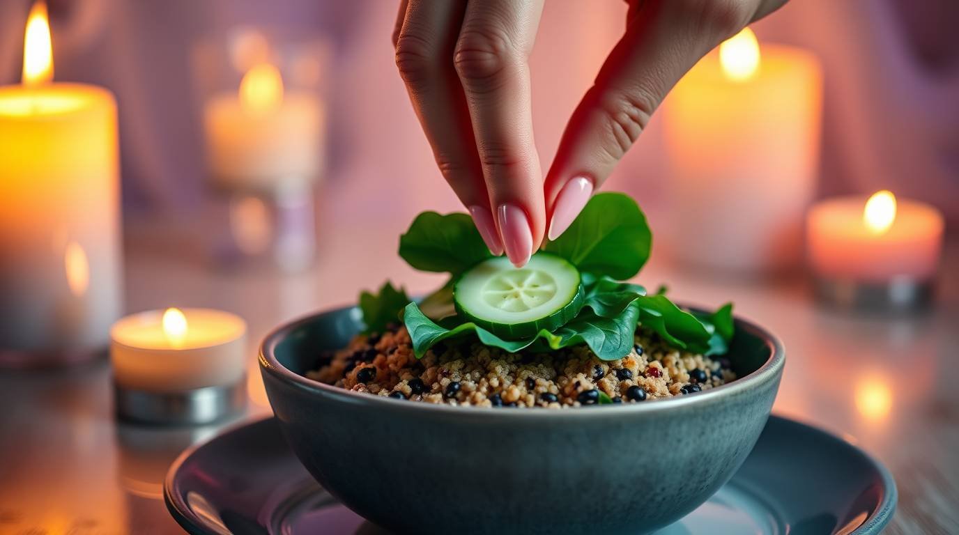 Welcome to the future of nourishment. This Quinoa–Spinach Energy Bowl with Spirulina Dressing is more than a meal; it’s a recalibration for your cells. Designed to synchronize with your bioenergetic field, this dish combines the grounding resilience of quinoa with the chlorophyll-rich vitality of spinach. The star, however, is the spirulina dressing—an ancient algae reimagined for a quantum kitchen, offering protein, antioxidants, and a vibrant turquoise glow that looks as futuristic as it feels.