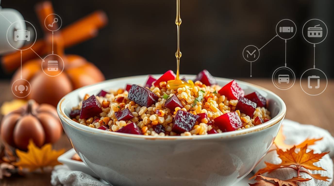 Quinoa, often referred to as a superfood, brings in a nutty flavor and a slightly chewy texture that beautifully complements the creaminess of the lentils and the softness of the beets. This ancient grain is a complete protein, meaning it contains all nine essential amino acids, making it a fantastic choice for those looking to boost their protein intake without relying on animal products.