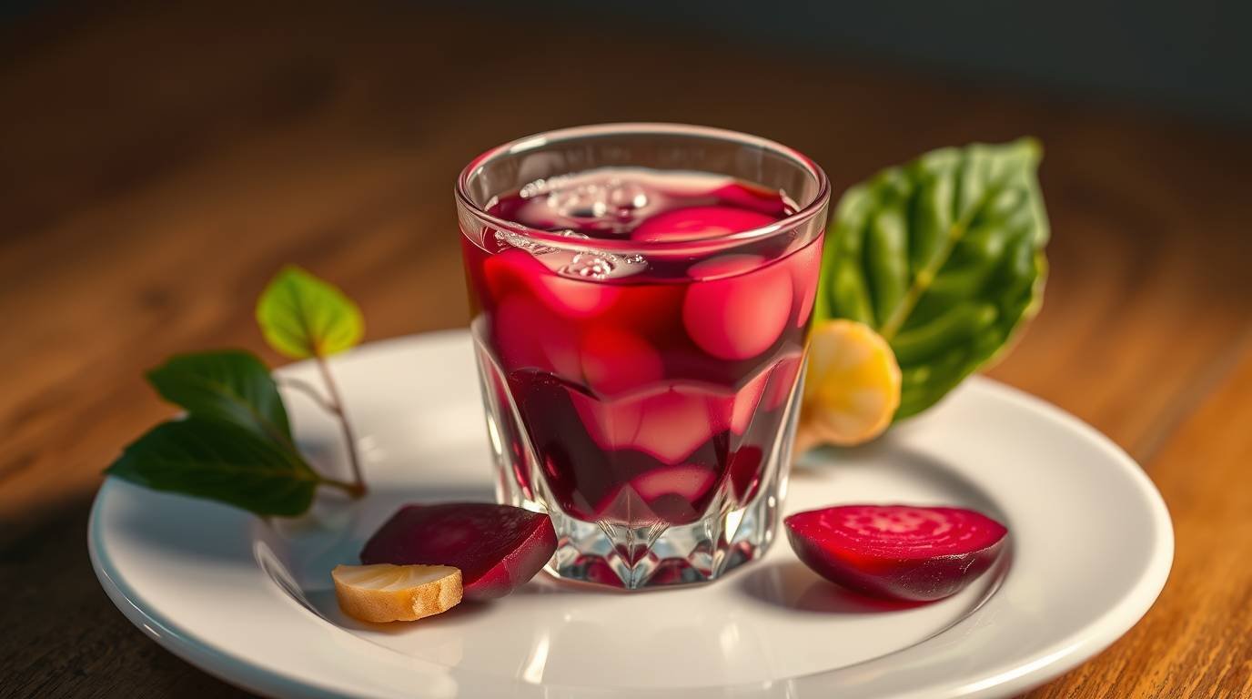 A fiery yet grounding elixir — the beet nurtures endurance, the ginger sparks circulation, and the mineral salts replenish what the body gives away in effort. NEA recommends sipping slowly, imagining the liquid carrying crimson light into every cell.