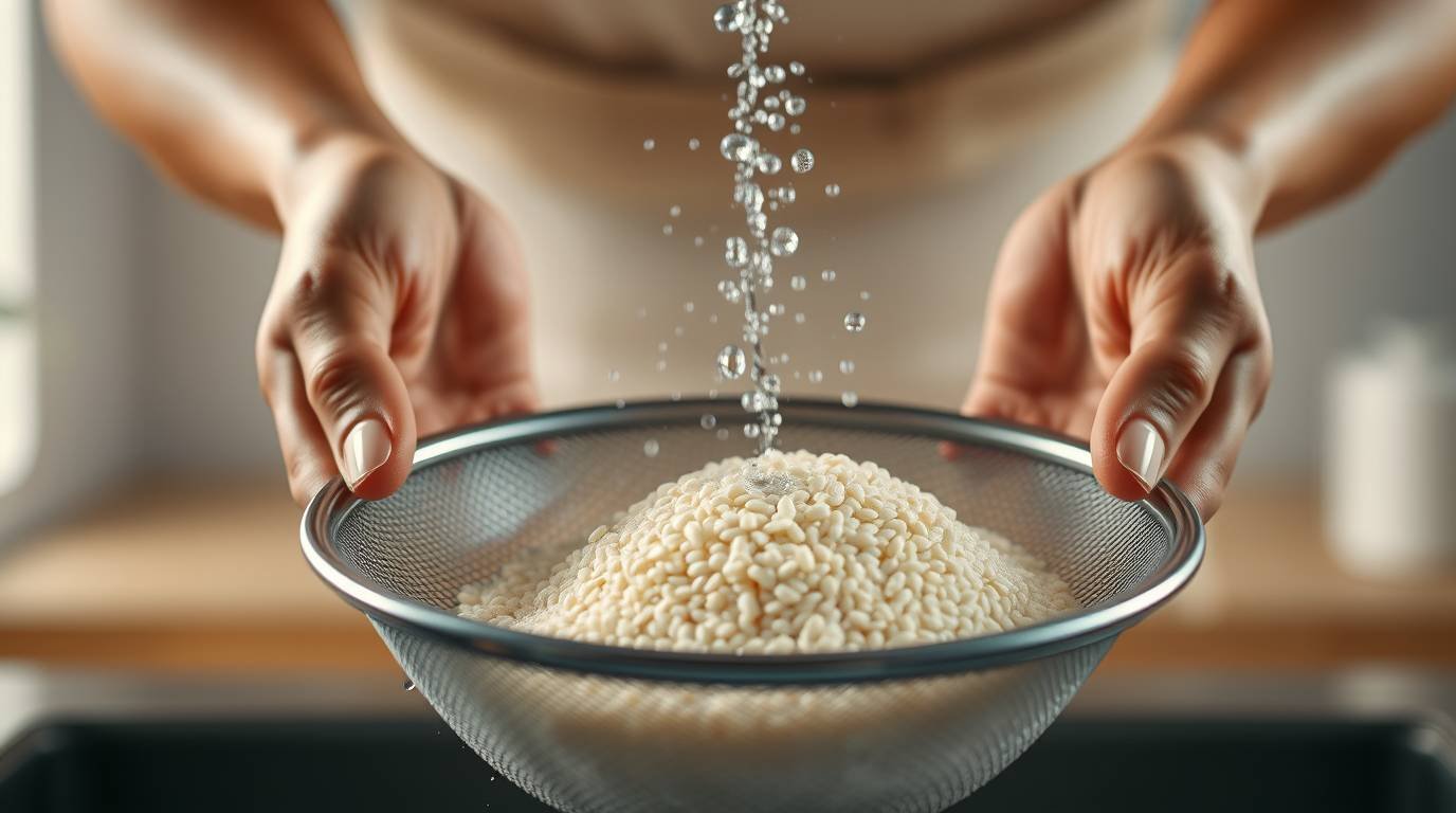 Place 1 cup of quinoa in a fine-mesh strainer and rinse it under cold water for about 2 minutes. This helps to remove the natural coating called saponin, which can taste bitter.