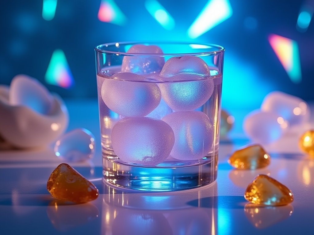 Add ice cubes or clear spheres to a serving glass. Optionally, add Lion’s Mane for focus or Citrine crystal essence for prosperity.
